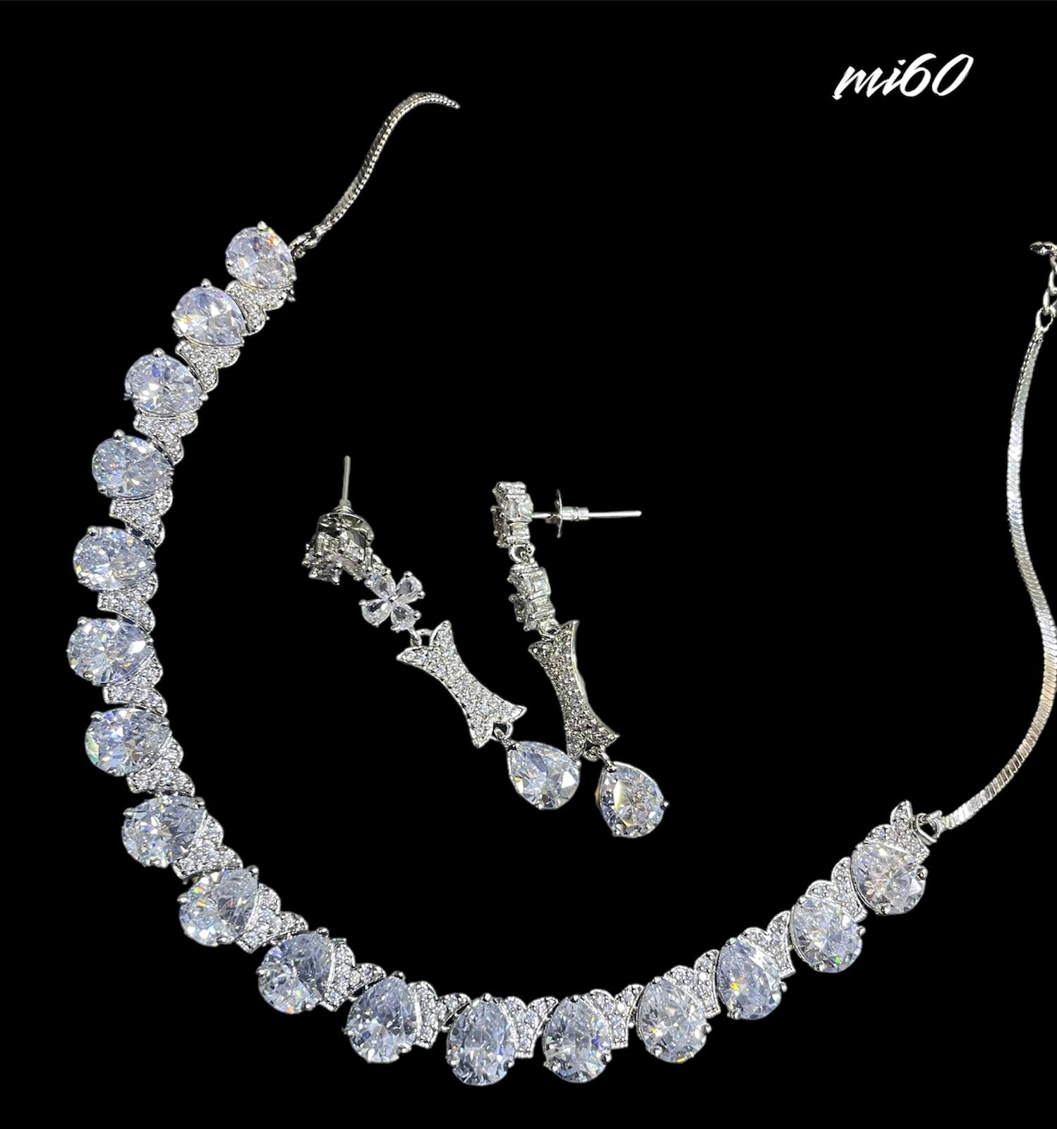 Necklace Set with Rhodium Silver Plating & American Diamond Stones