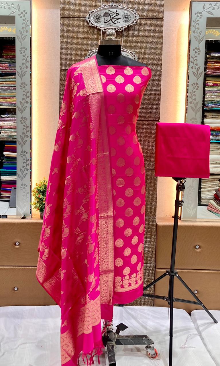 Fabric: Top -Banarasi Silk 2.5 mtr Bottom – 2.5 mtr Dupatta – 2.5 mtr