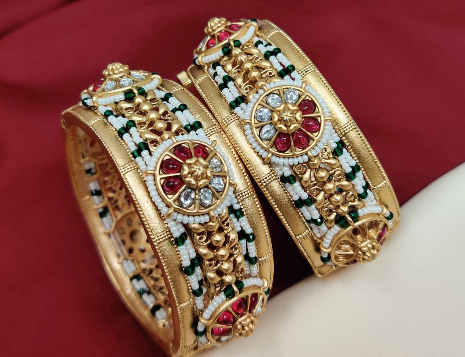 Bangles Pearl Kundan kada Set Brass Premium quality