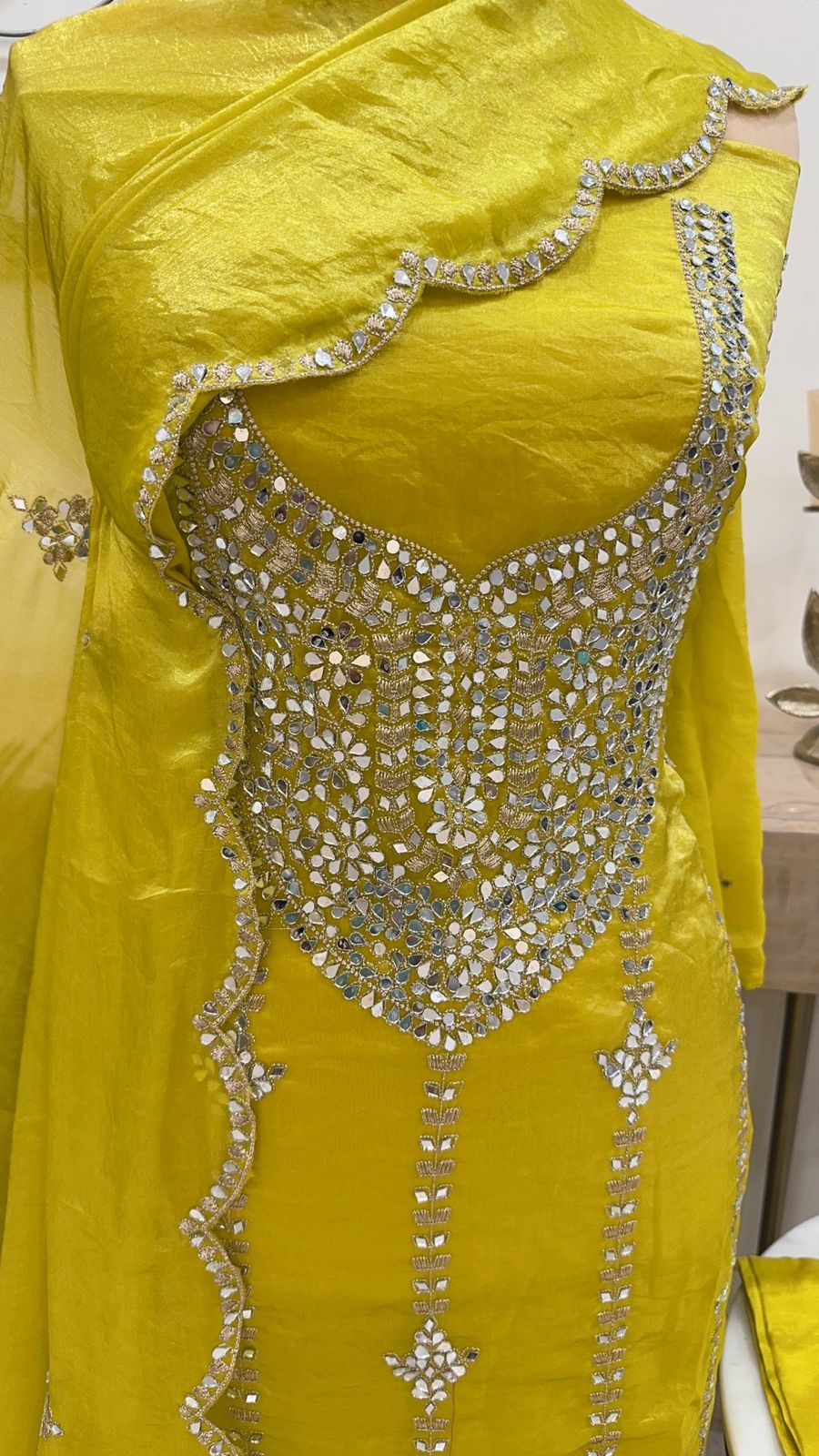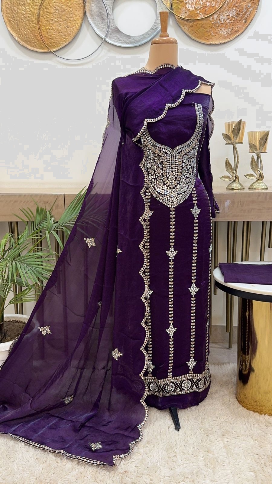 Beautiful Pure And Very Soft Glass Organza Shirts With Beautiful Heavy Real Mirror And Dori Work