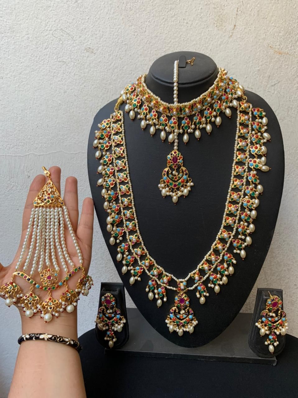 Elevate your style with this stunning party wear Bridal set.This Bridal Set has been alternatively arranged with gorgeous rectangular motifs and oval motifs.Not only does this Bridal set elevate your style, but it also makes for a perfect gift for women and girls,showcasing your impeccable taste in fashion and jewelry. Base Metal of our product is Alloy.We pack all the products using quality packaging material to ensure safe and secure transportation.