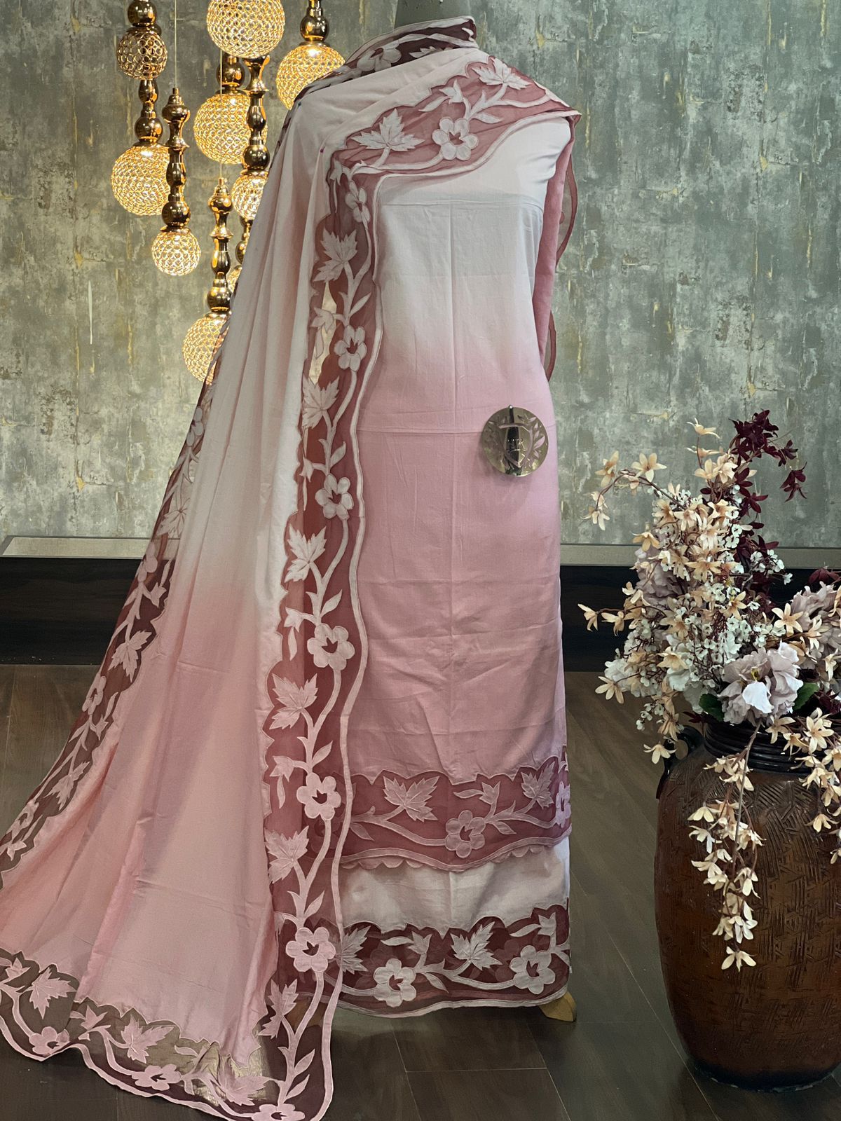 COTTON CUTWORK DESIGNER DOUBLE SHADE SUITS IN PINK COLOR
