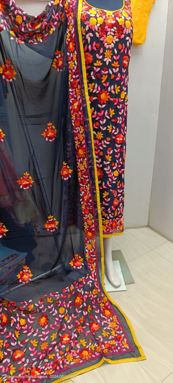 Always Buy Original Phulkari Products Rich in Quality Hand Crafted Georgette Phulkari Suits .