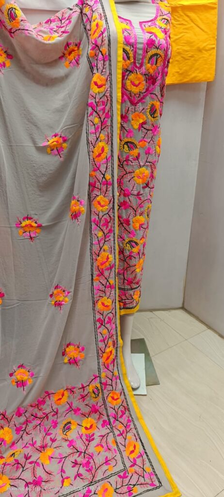 – *Dupatta:* Matching dupatta with a Golden and Zigzag Line design along its edges.