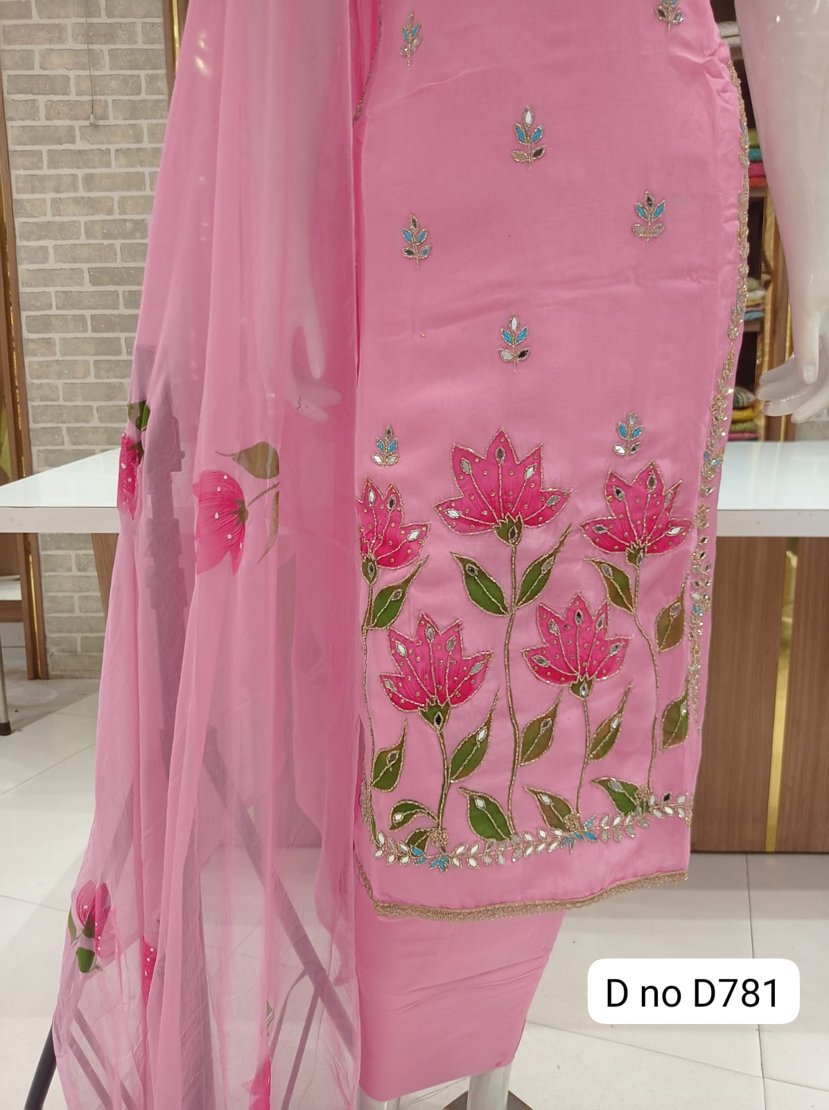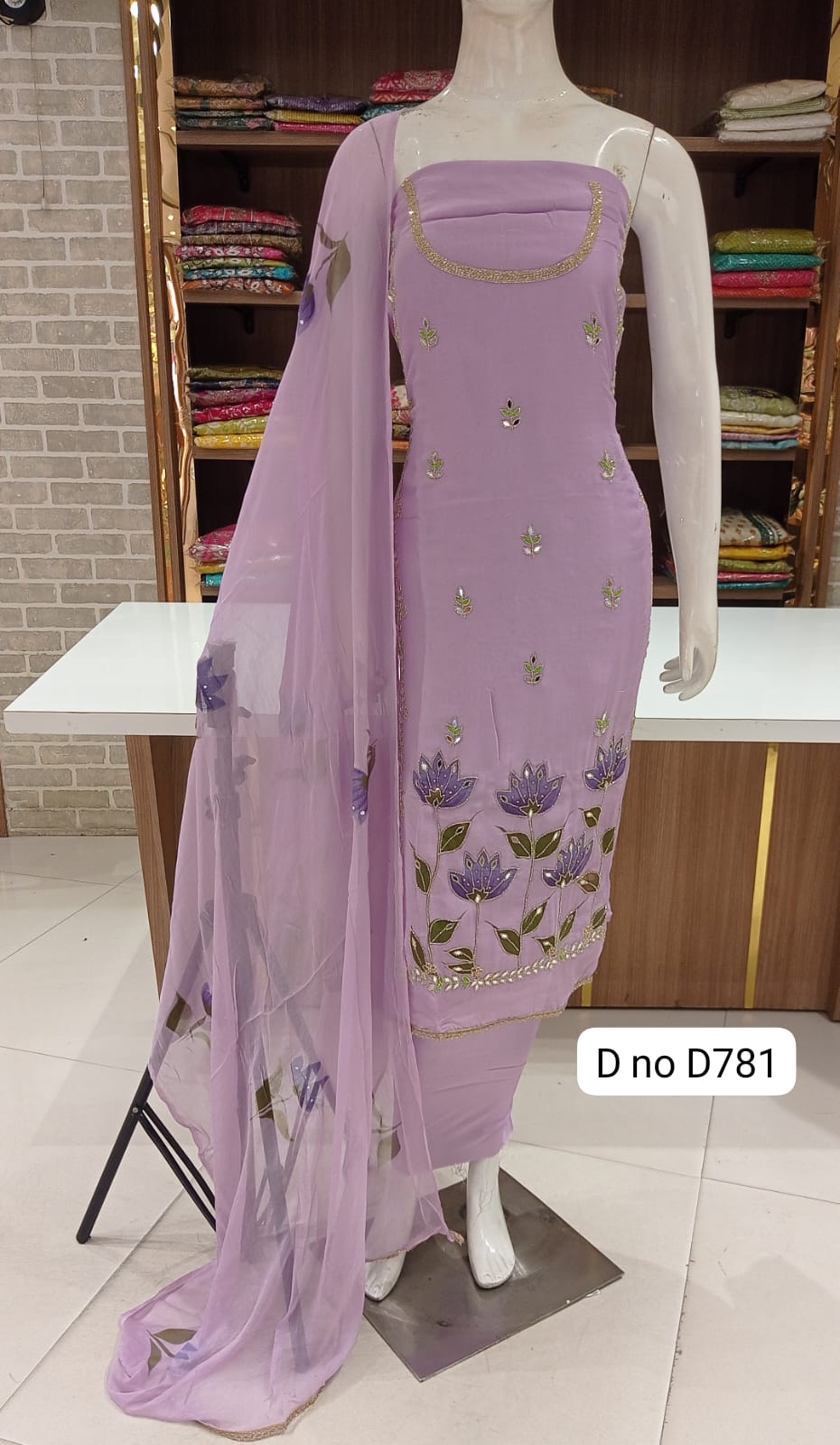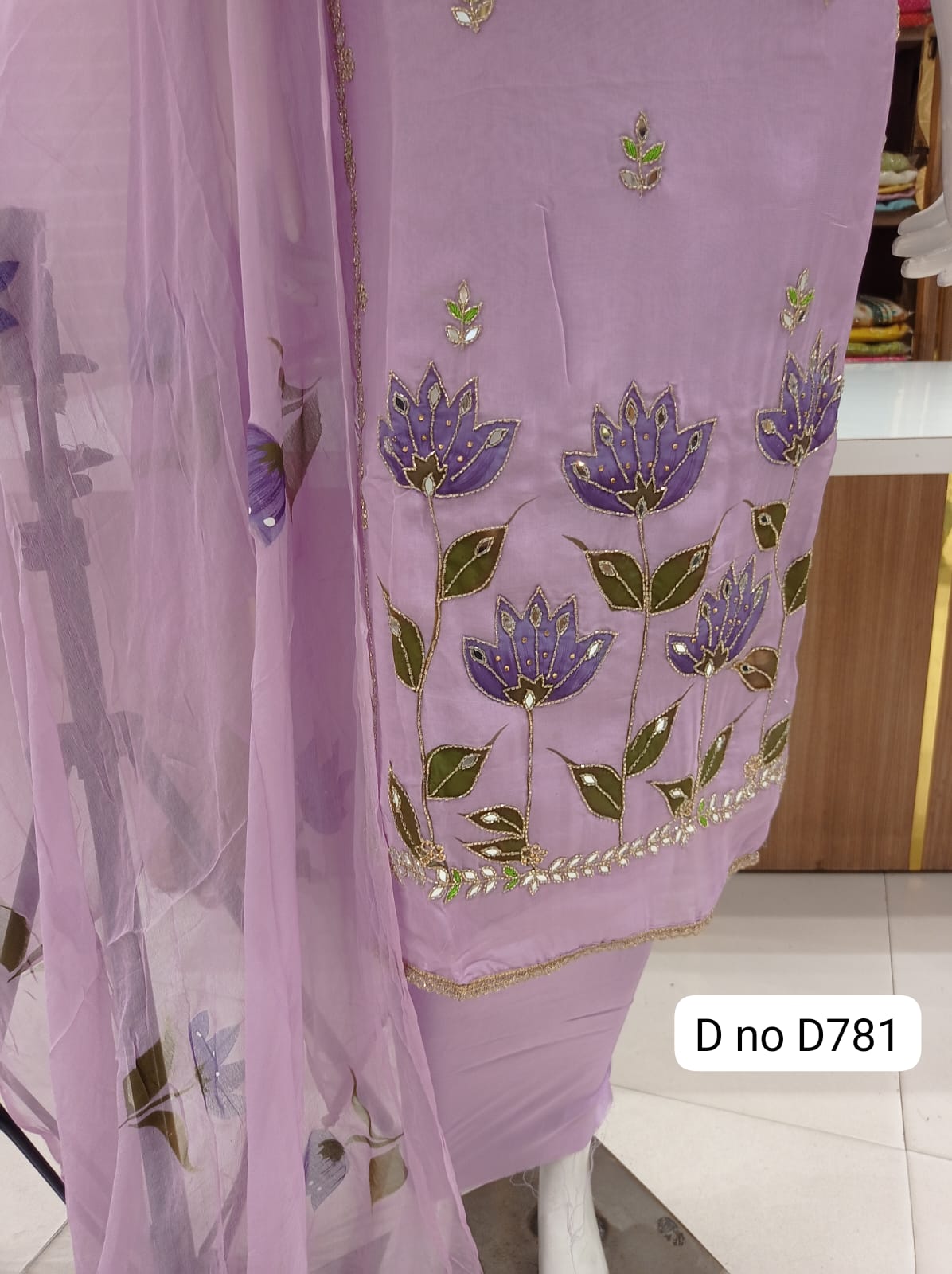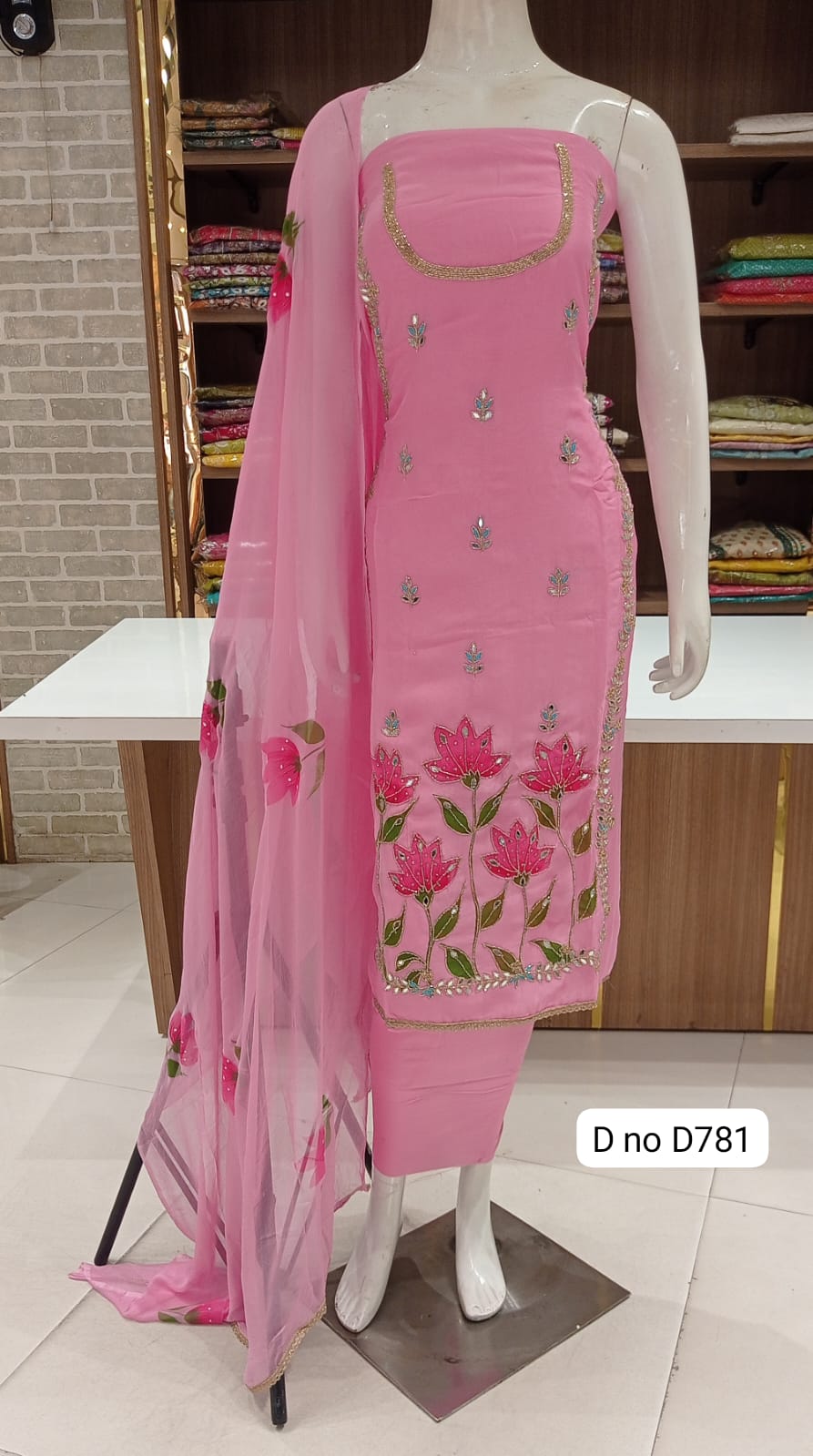 Imported soft organaza dress material with beautiful front hand work Original mirror work Sleeves beautiful work