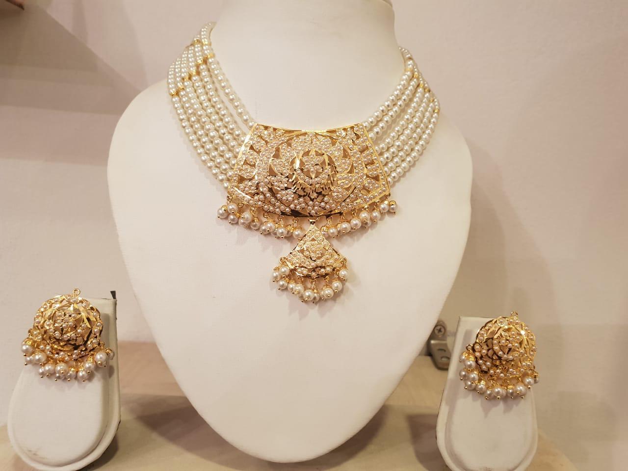 Be the first to review “Jadau Necklace Set With Color White Pearls 005321” Cancel reply