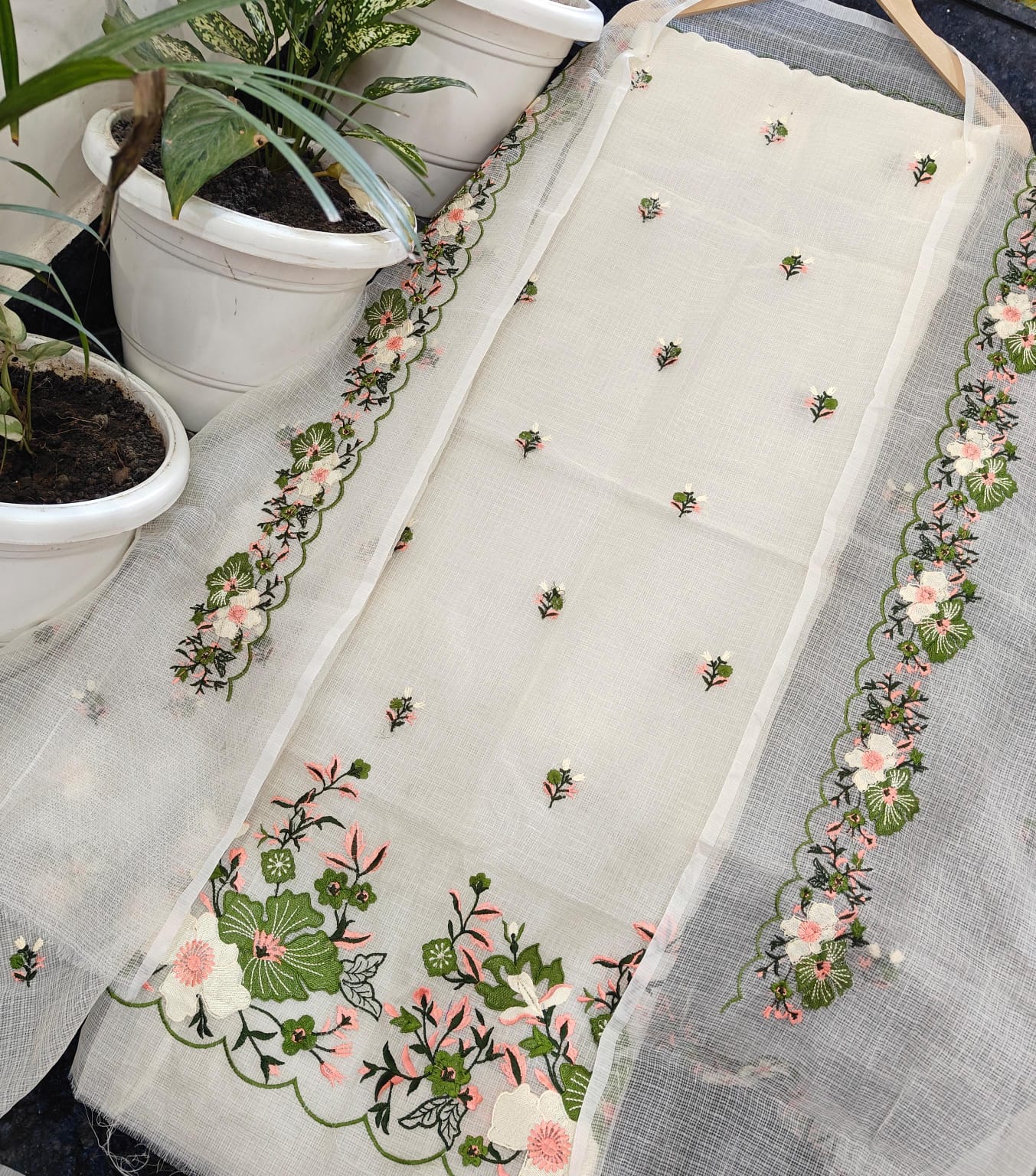 Kota-Doria Unstitched Suit with Colorful Embroidey Work