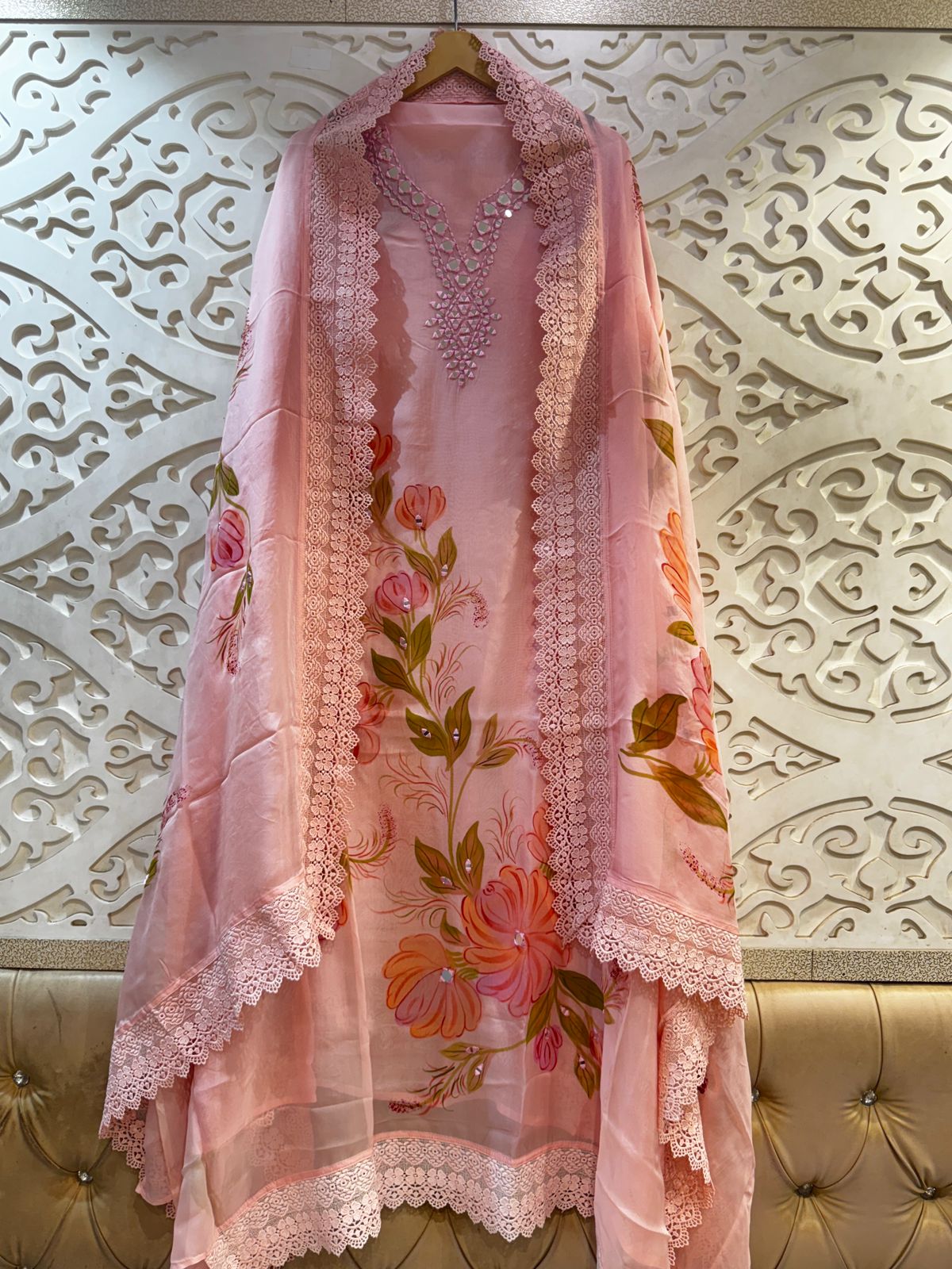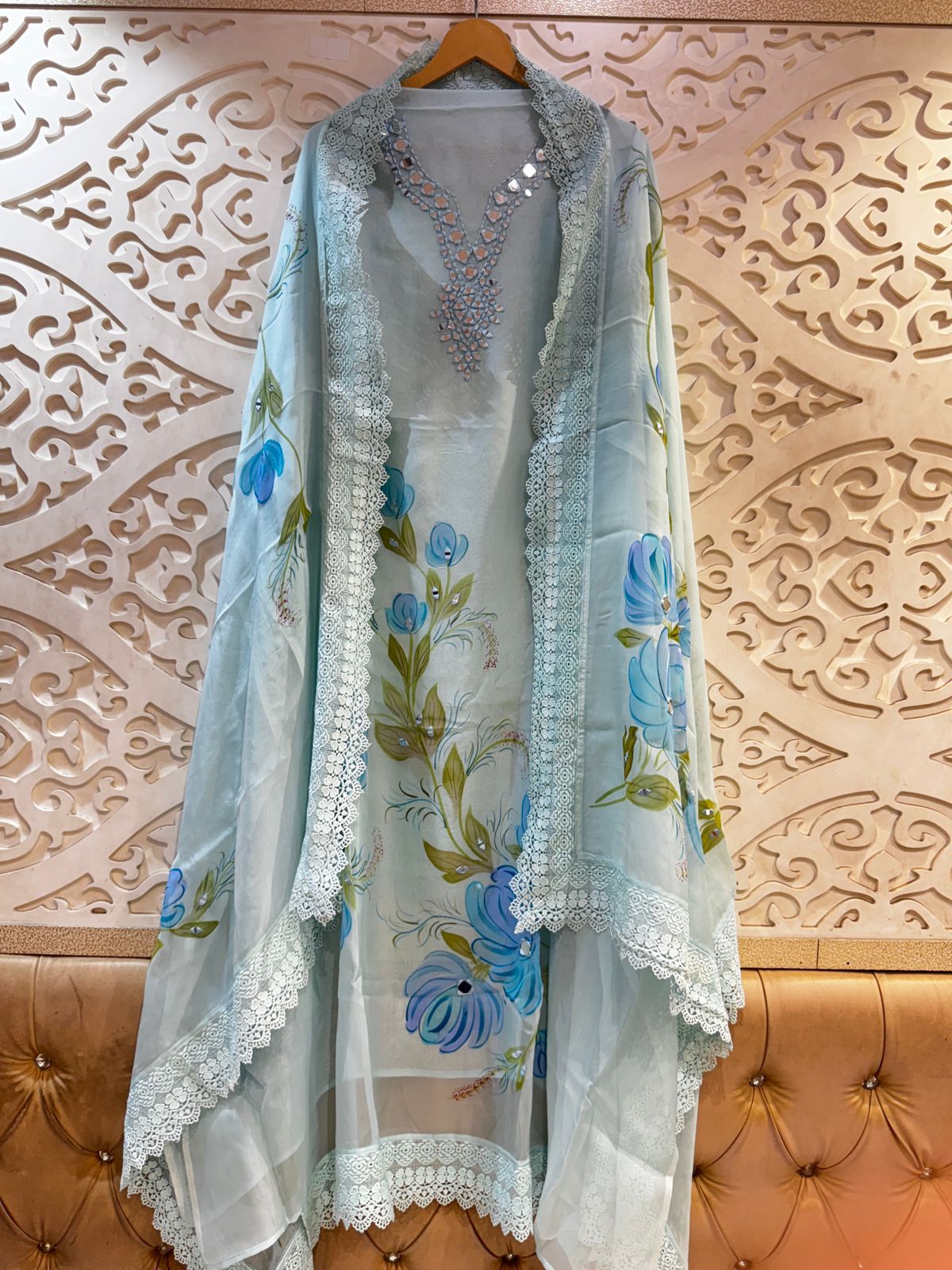 Measurement : Top- 2.5m length & 42″ width, Dupatta- 2.5m length & 34″ width & Bottom 2.5m