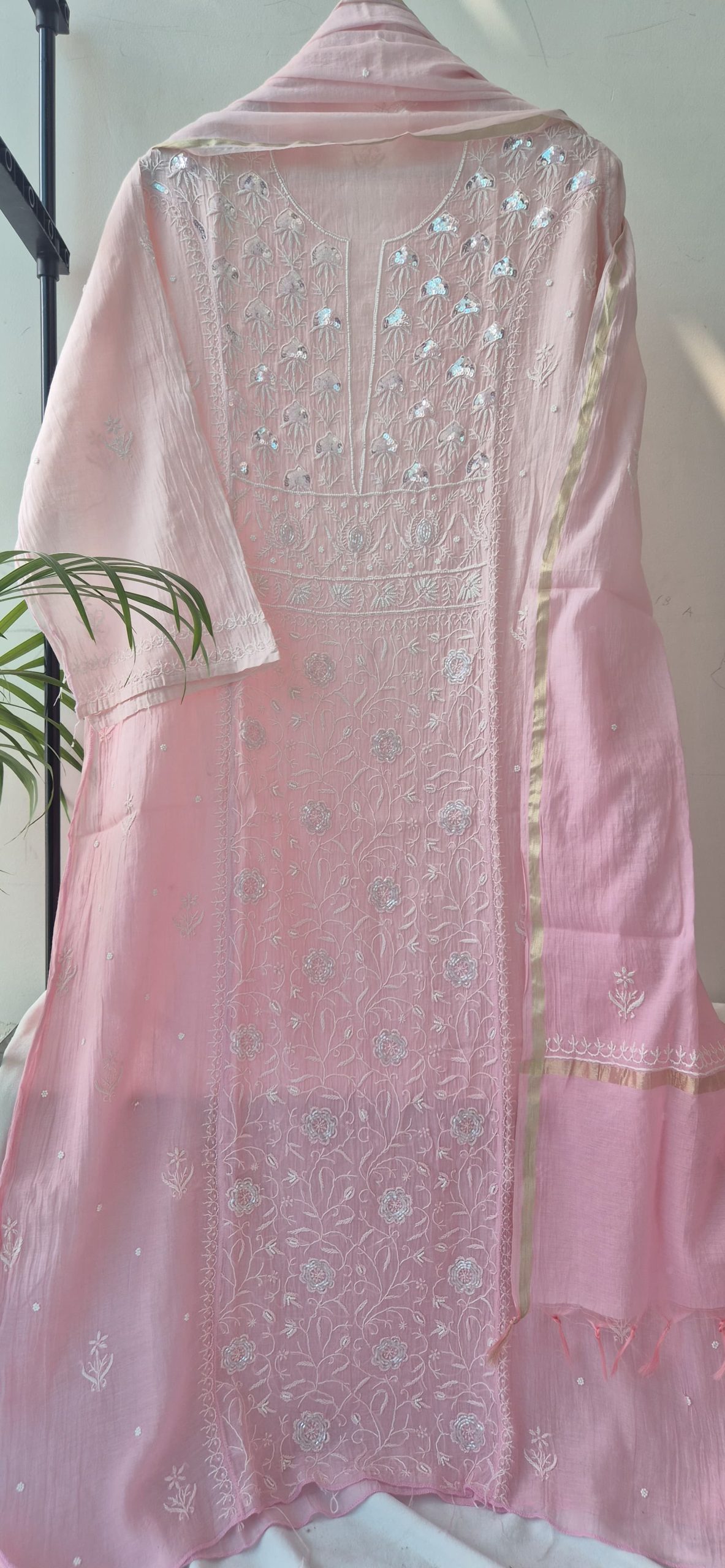 Pure Mulmul Chanderi chikankari suit kurta and dupatta set