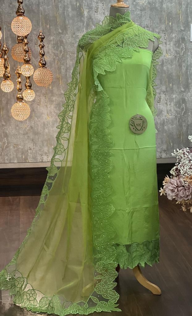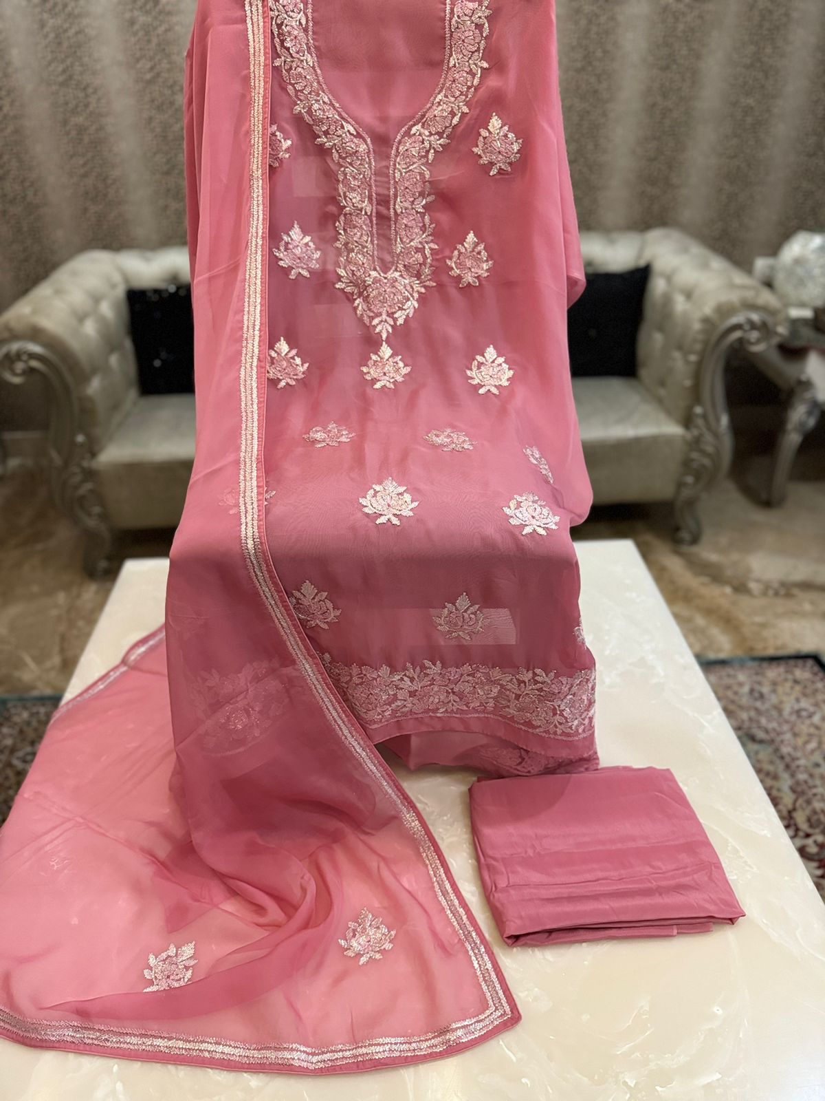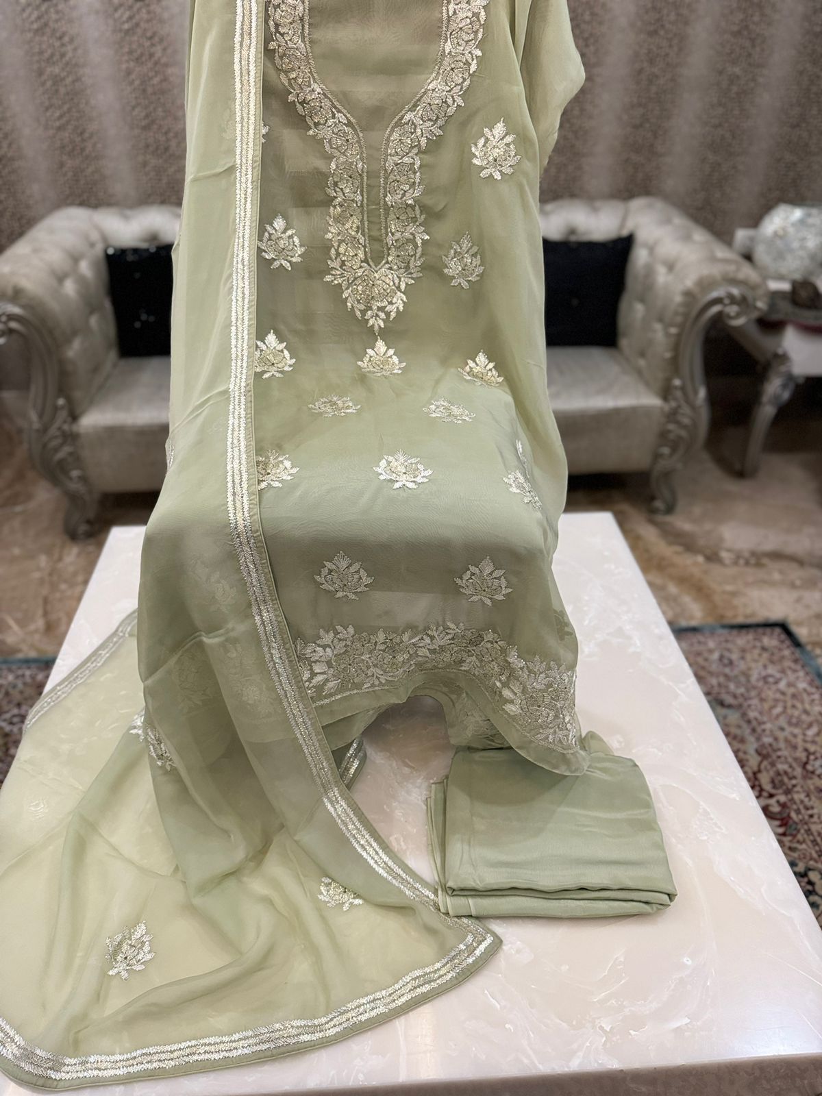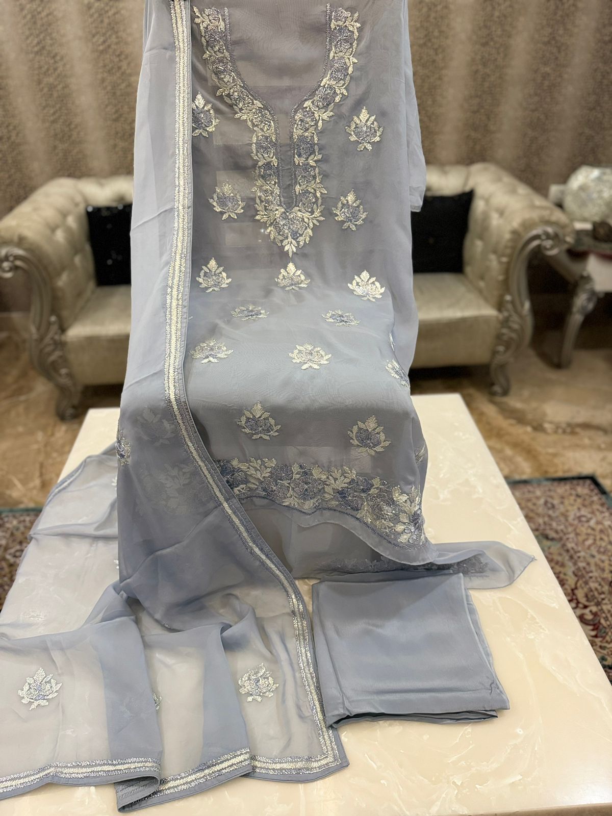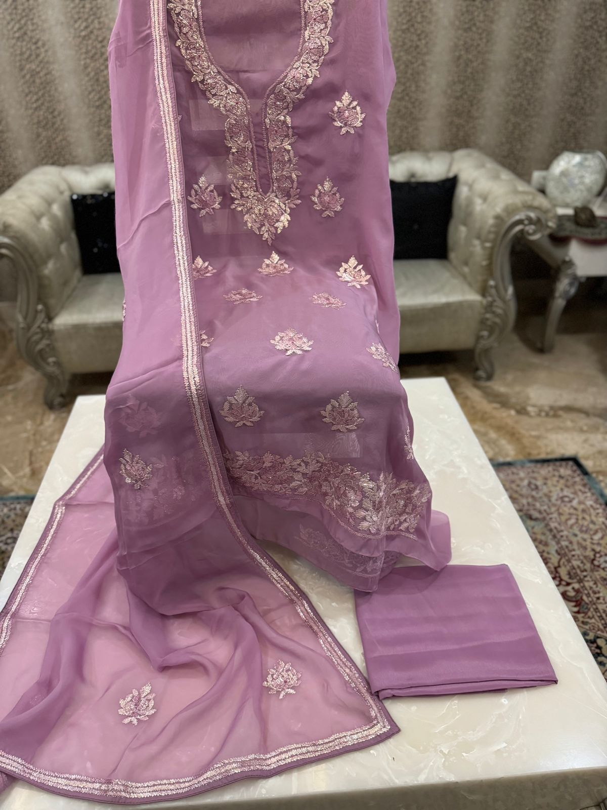 Pure organza handwork embroidered top , pure organza hand embroidered dupatta n pure crepe bottom