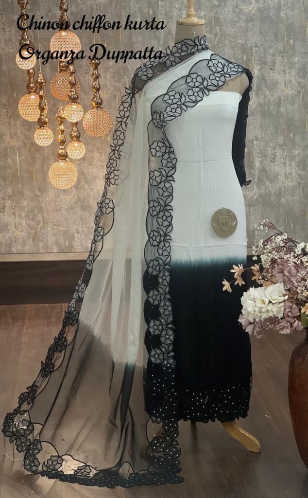 Pure organza handwork embroidered top , pure organza hand embroidered dupatta n pure crepe bottom