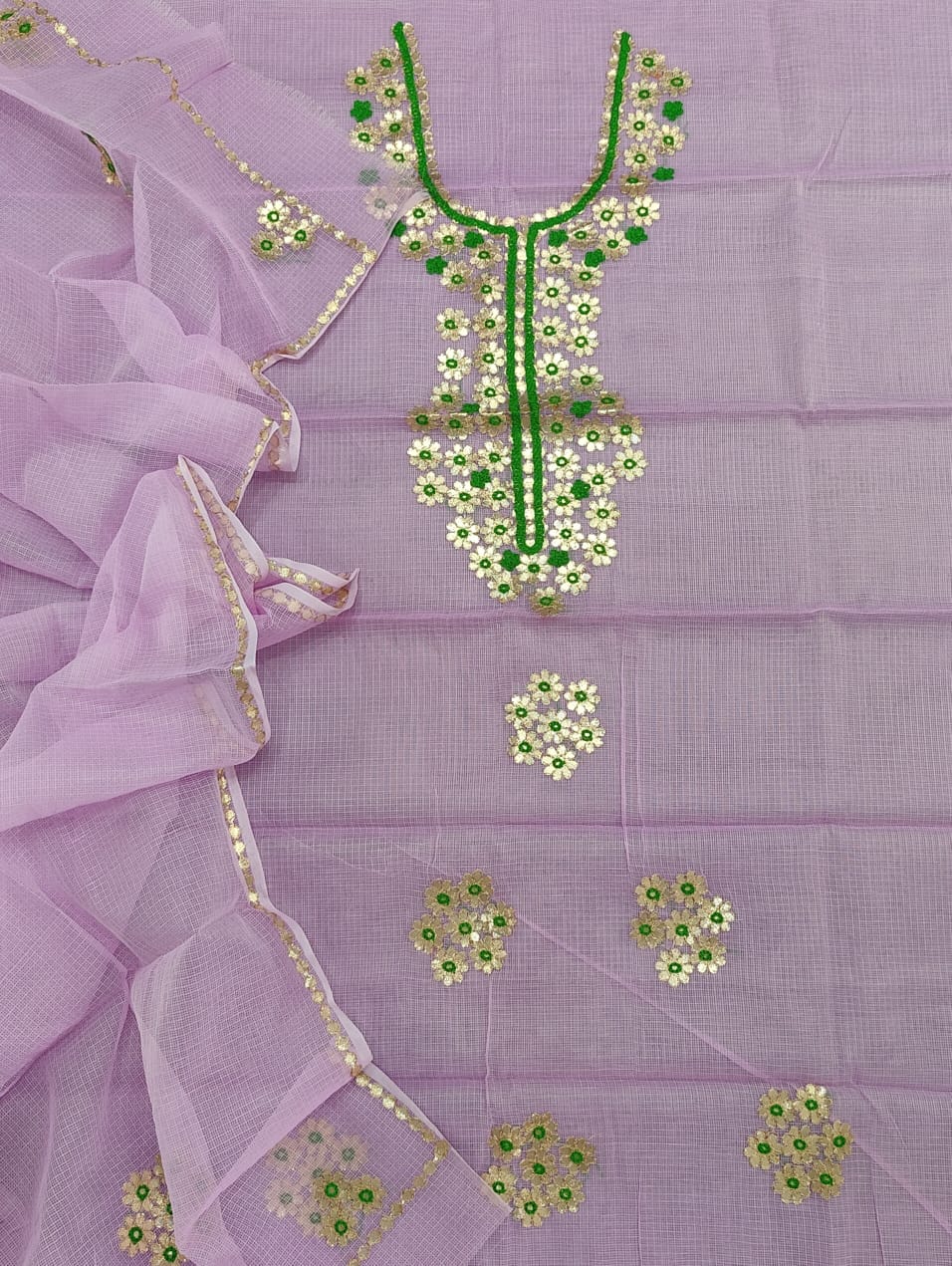 PURPLE KOTA DORIA GOTTA PATTI WORK SUITS MATERIAL