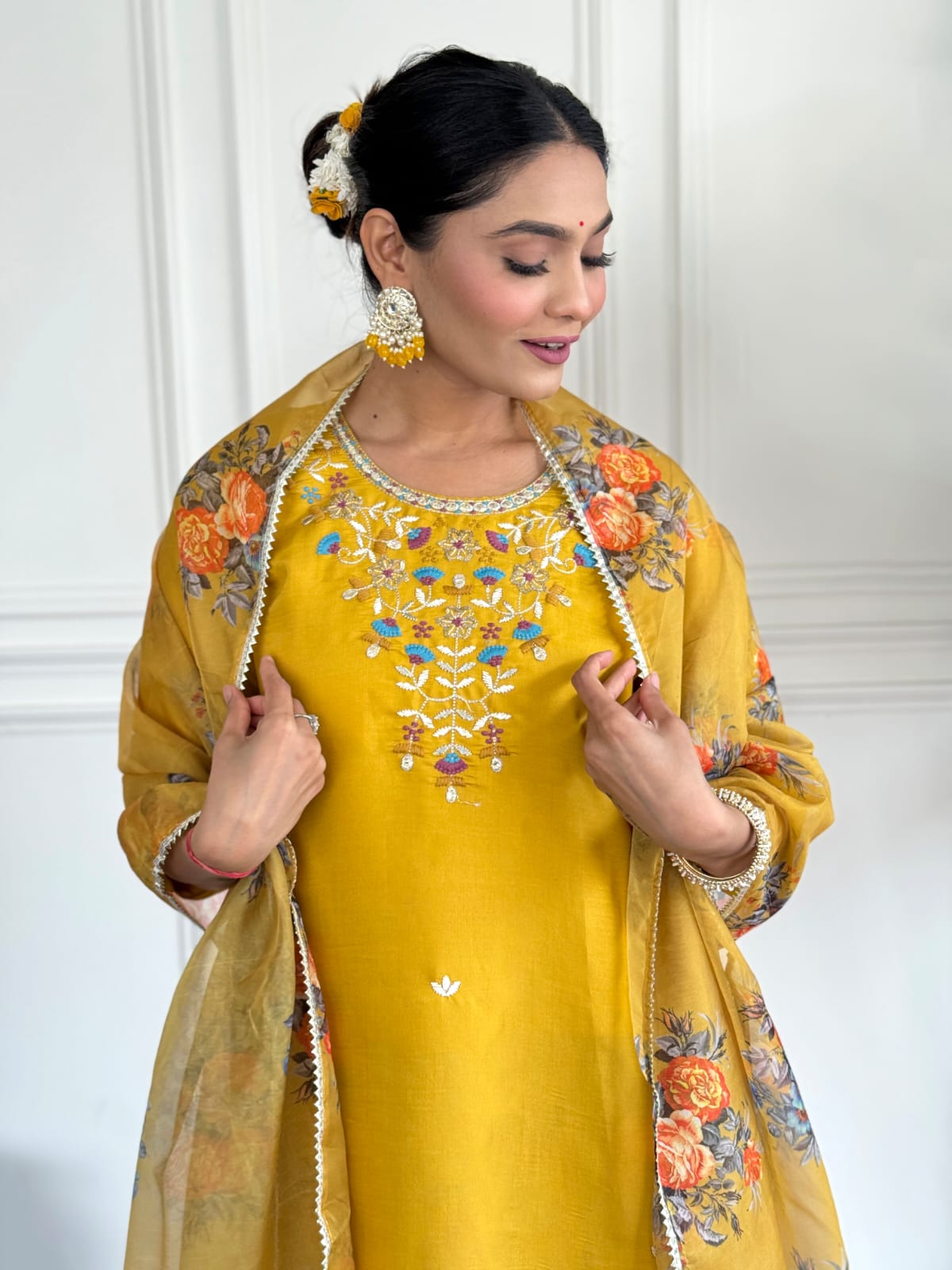 Dupatta Fabric – Silk with Digital Print with four side Lace